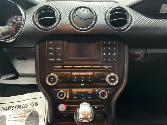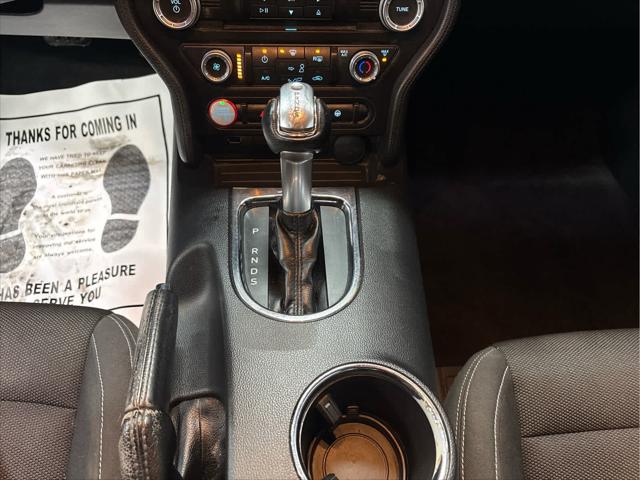V6 trim. Smart Device Integration Onboard Communications System CD Player iPod/MP3 Input ENGINE: 3.7L TI-VCT V6 SPARE WHEEL & TIRE TRANSMISSION: 6-SPEED SELECTSHIFT AUT... EQUIPMENT GROUP 051A Back-Up Camera. <br /><br />KEY FEATURES INCLUDE<br />Back-Up Camera iPod/MP3 Input CD Player Onboard Communications System Smart Device Integration. Ford V6 with Race Red exterior and Ebony interior features a V6 Cylinder Engine with 300 HP at 6500 RPM*. <br /><br />OPTION PACKAGES<br />paddle shifters Leather-Wrapped Shift Knob Remote Start System Tires: P235/50R18 BSW AS 6-Way Power Driver Seat w/Power Lumbar Blade Decklid Body-Colored Spoiler Wheels: 18 x 8 Foundry Black-Painted Aluminum Machined LED Fog Lamps SPARE WHEEL & TIRE (STD). <br /><br />EXPERTS ARE SAYING<br />The 2016 Ford Mustang is a well-behaved muscle car that loves the open road. Tire and wind noise are modest making for a fairly peaceful cabin at highway speeds. -Edmunds.com. <br /><br />AFFORDABLE TO OWN<br />Reduced from $16 178. This Mustang is priced $500 below Kelley Blue Book. <br /><br />VISIT US TODAY<br />Wilmington Auto Center Chrysler Dodge Jeep Ram a Better Value and Better Experience! <br /><br />Pricing analysis performed on 3/10/2026. Horsepower calculations based on trim engine configuration. Please confirm the accuracy of the included equipment by calling us prior to purchase. <br />