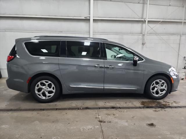 Clean CARFAX 1-Owner. EPA 28 MPG Hwy/19 MPG City! Heated Leather Seats 3rd Row Seat Sunroof Navigation Captains Chairs Panoramic Roof ENGINE: 3.6L V6 24V VVT UPG I W/ESS TRANSMISSION: 9-SPEED 948TE AUTOMATIC... Alloy Wheels <br /><br />EXCELLENT SAFETY FOR YOUR FAMILY<br />Blind Spot Monitor Cross-Traffic Alert Lane Keeping Assist Child Safety Locks Electronic Stability Control Brake Assist 4-Wheel ABS 4-Wheel Disc Brakes Safety equipment includes Blind Spot Monitor Chrysler Limited with Ceramic Gray Clearcoat exterior and Black/Alloy/Black interior features a V6 Cylinder Engine with 287 HP at 6400 RPM*. <br /><br />A GREAT TIME TO BUY<br />This Pacifica is priced $400 below Kelley Blue Book. <br /><br />VEHICLE FEATURES<br />Non-Smoker vehicle <br /><br />OPTION PACKAGES<br />(STD) (STD). <br /><br />BUY WITH CONFIDENCE<br />Clean <br /><br />VEHICLE REVIEWS<br />Great Gas Mileage: 28 MPG Hwy. <br /><br />BUY FROM AN AWARD WINNING DEALER<br />Wilmington Auto Center Chrysler Dodge Jeep Ram a Better Value and Better Experience! <br /><br />Pricing analysis performed on 1/16/2026. Horsepower calculations based on trim engine configuration. Fuel economy calculations based on original manufacturer data for trim engine configuration. Please confirm the accuracy of the included equipment by calling us prior to purchase. <br />